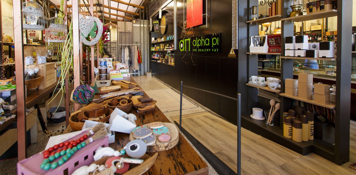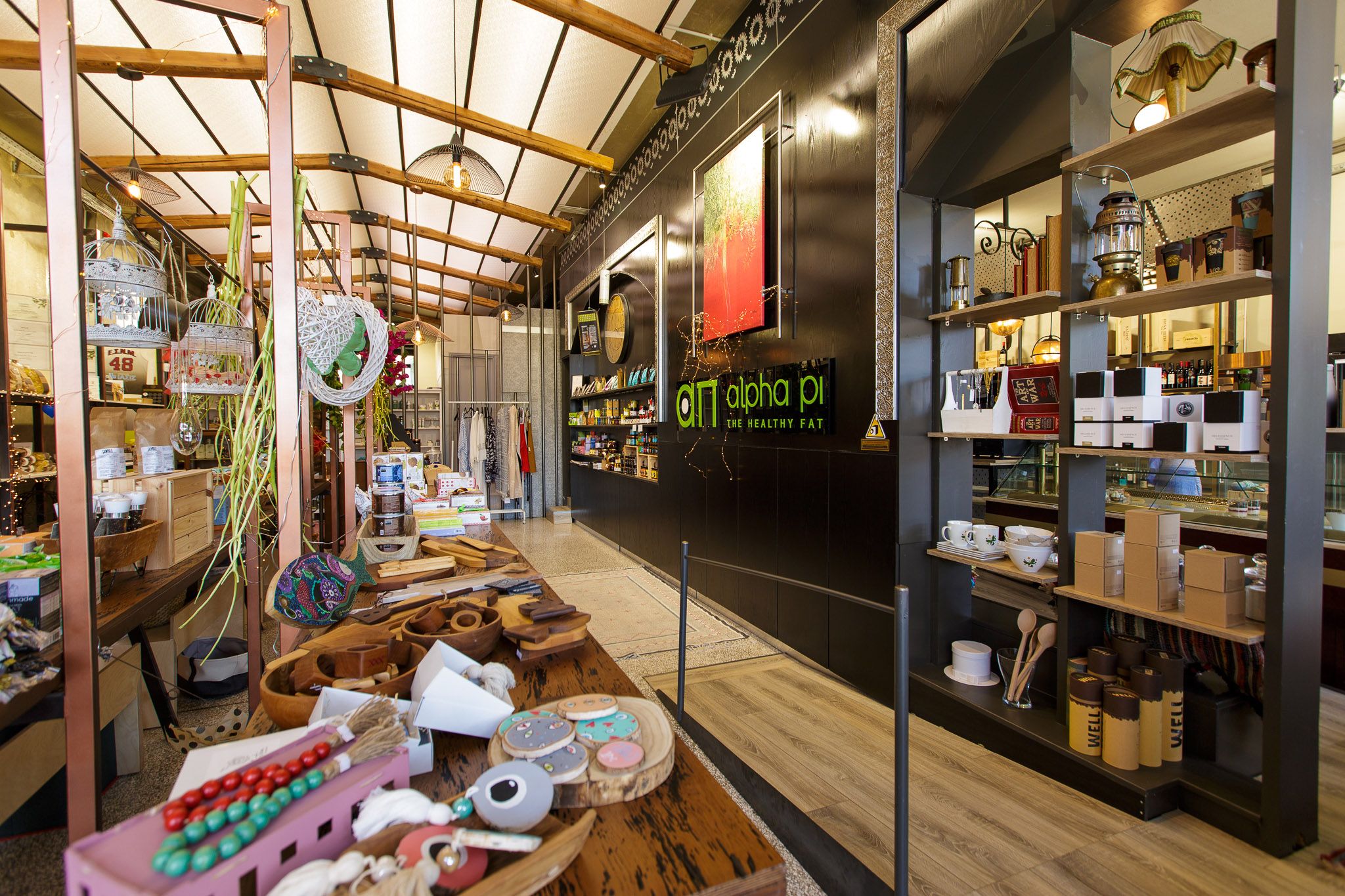 Το γευστικό αυτό πλούτο έρχονται να συμπληρώσουν διάφορα προϊόντα ψυγείου και κατάψυξης, όπως αλλαντικά, τυριά, αλίπαστα, ειδικά προϊόντα όπως ελληνικό χαβιάρι, αυγοτάραχο, σαλιγκάρια και χέλια, καθώς και έτοιμα γεύματα, όπως χειροποίητα ντολμαδάκια, γεμιστά ραβιόλια με σολομό ή πέστροφα, χειροποίητες πίτες κ.ά. Κι επειδή το χάρισμα της ελληνικής δημιουργικότητας είναι μια απύθμενη πηγή καλλιτεχνικών συνθέσεων, το Alpha Pi, εκτός από ένα σπίτι για μοναδικά εδέσματα, είναι και μια εστία τέχνης που φιλοξενεί εμπνευσμένα είδη δώρων, κοσμήματα, υφαντά, κεριά, κ.ά.
